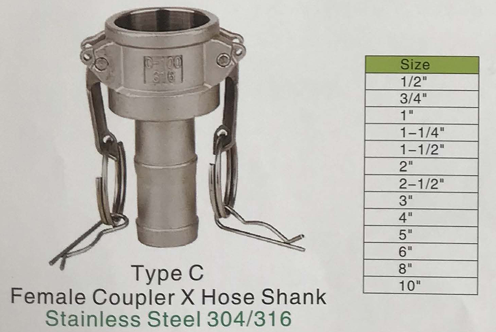 Type C Female Coupler X Hose Shank Stainless Steel 304/316
